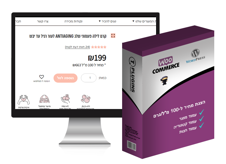 הצגת מחיר ל 100 מ”ל / גרם בדף המוצר ובדף הקטגוריה
