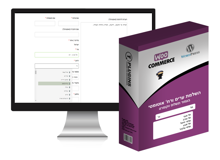 השלמת ערים ורחובות אוטומטי בעמוד תשלום